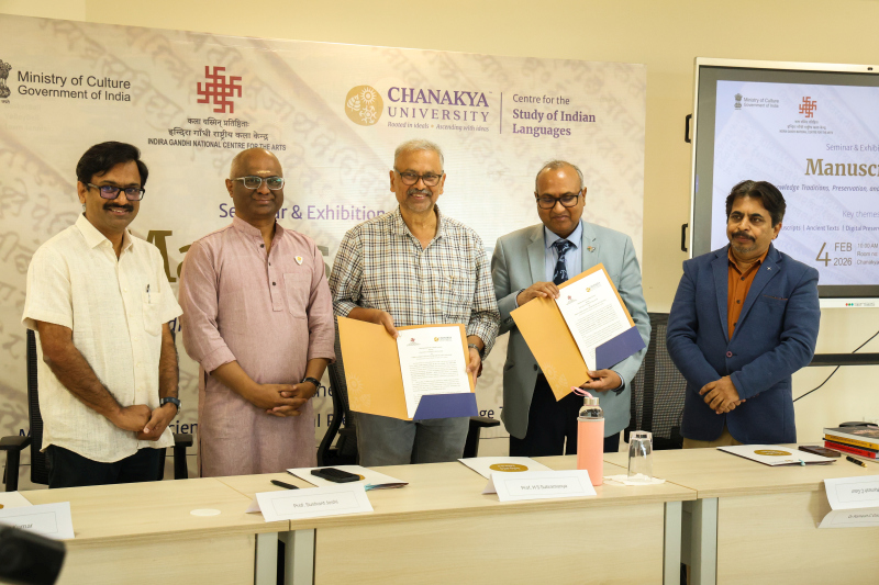 The event commenced with an introductory and welcome address by Prof. Ashwin Kumar, Head and In-Charge of the Centre for the Study of Indian Languages (CSIL), Chanakya University. This was followed by the formal signing of a Memorandum of Understanding (MoU) establishing an academic and technical partnership between Chanakya University and the Indira Gandhi National