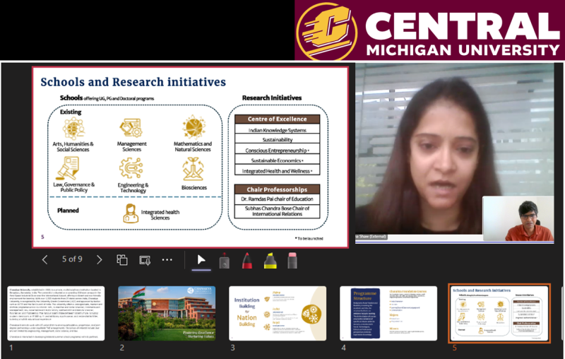 Chanakya University welcomed a representative from Central Michigan University (CMU), USA, for discussions on potential academic collaboration. The interaction explored possibilities for student internships, student exchange programs, and the proposal of signing an MoU. Discussions also covered post-graduation academic pathways for Chanakya students at CMU. Follow-up communications are ongoing to translate these discussions into concrete academic opportunities.