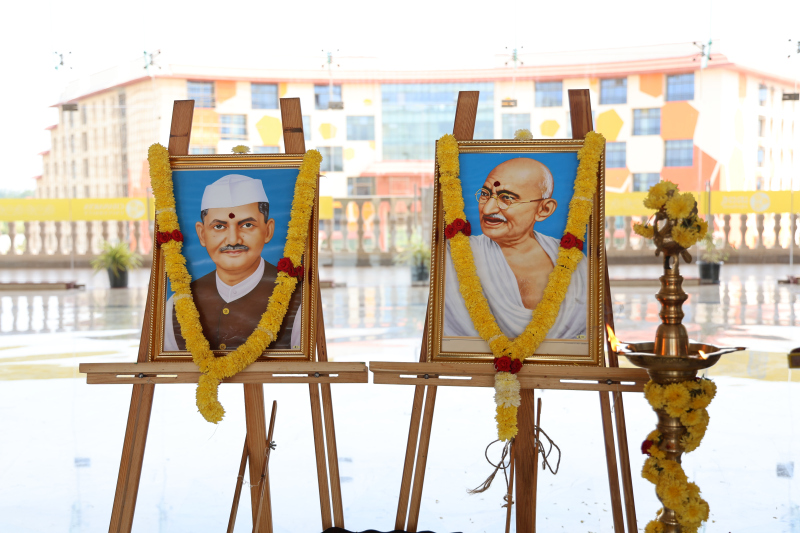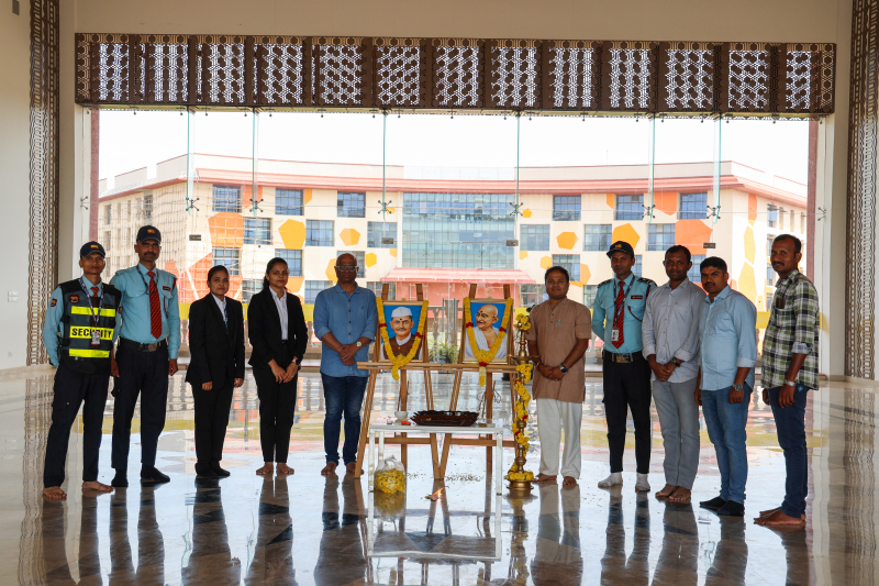 The University observed the birth anniversaries of Mahatma Gandhi and Shri Lal Bahadur Shastri on 2nd October 2025. The event included floral tributes and reflections on their contributions to the nation. Prof. Sushant Joshi, Registrar and Professor of Management, emphasized the relevance of their values in contemporary society. Sri Praphulla Chandra N, Assistant Registrar, highlighted Shastri’s message of “Jai Jawan Jai Kisan.” University staff was present during the occasion.