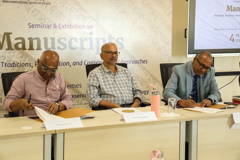 The MoU was signed by Prof. Sushant Joshi, Registrar, Chanakya University, and Dr. Ramesh C. Gaur, Dean (Administration), IGNCA, along with Sri Mahendra D (Bangalore Regional Head, IGNCA), in the august presence of Prof. Subrahmanya, Pro-Vice-Chancellor, Chanakya University. The partnership aims to foster long-term collaboration in academic, archival, and digital initiatives related to Indian knowledge systems and manuscript traditions.