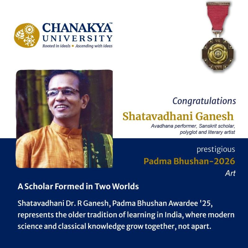 Congratulations to Shatavadhani Ganesh on being conferred the prestigious Padma Bhushan 2026 in the field of Art. His journey is a reminder that depth, discipline and tradition together shape enduring knowledge.