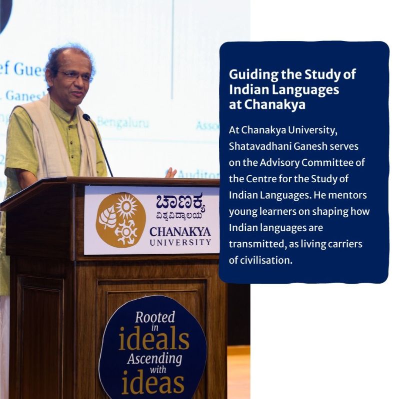 A distinguished Avadhana performer, polyglot and literary artist, his scholarship is marked by a D.Litt. from Hampi Kannada University and decades of contribution to India’s intellectual traditions. At Chanakya University, he continues to guide the study of Indian languages, mentoring young learners to see languages as living carriers of civilisation.