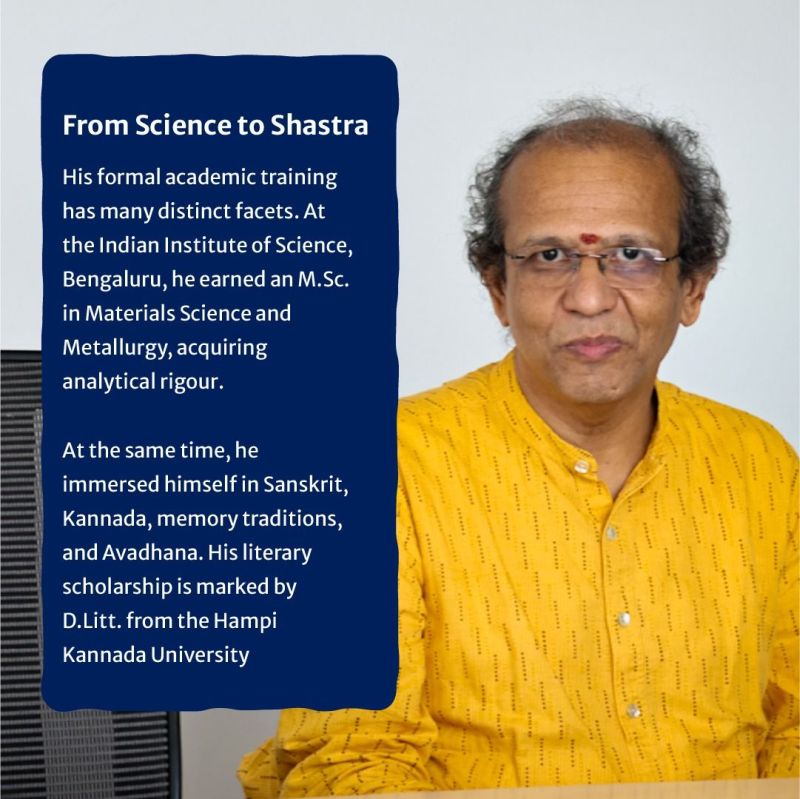 From rigorous training in Materials Science at IISc Bengaluru to lifelong immersion in Sanskrit, Kannada, memory traditions and Avadhana, Shatavadhani Dr. R. Ganesh embodies the seamless coexistence of modern science and classical Indian knowledge.