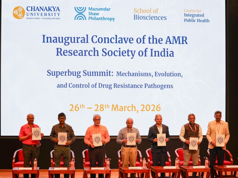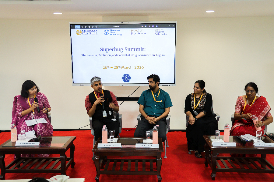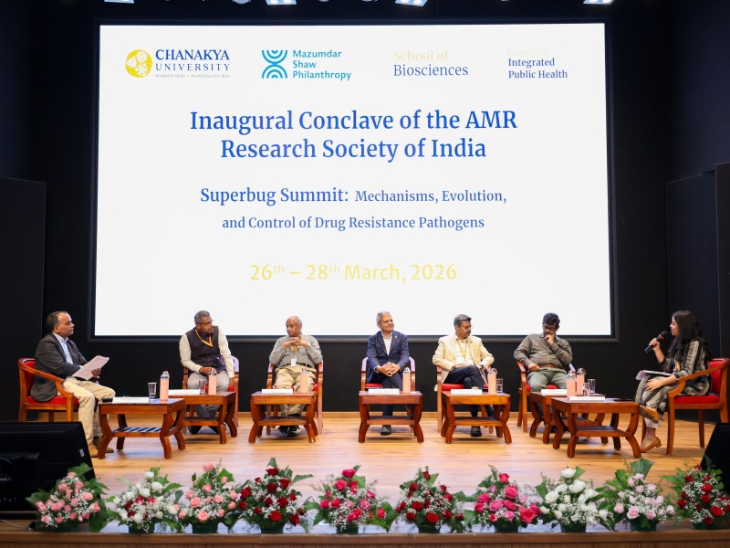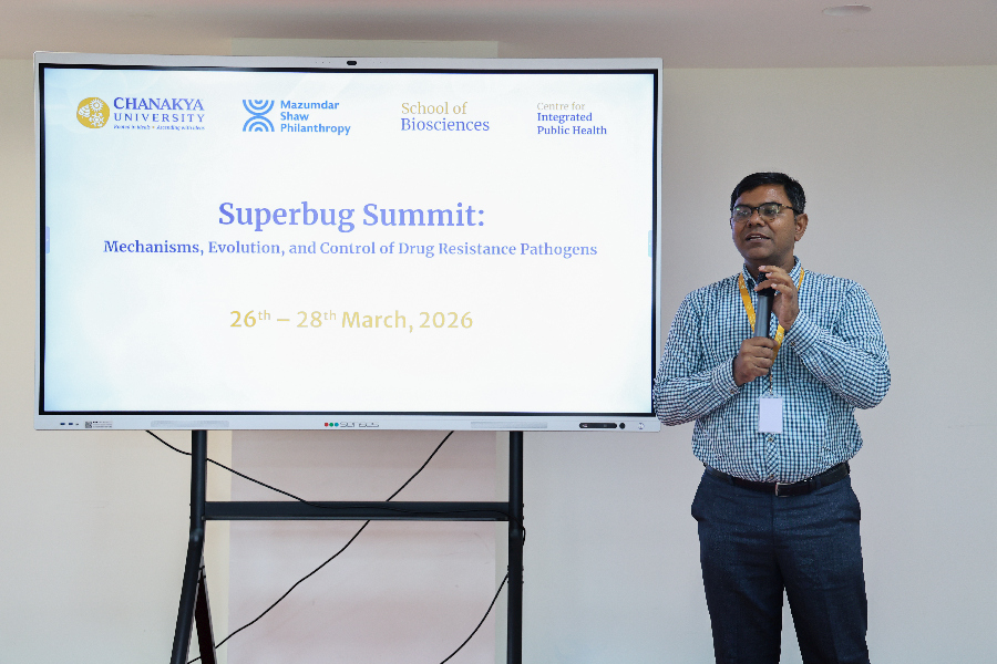 The inaugural session was graced by Guest of Honour  Prof. L. S. Shashidhara, Director, NCBS, and Chief Guest Dr. S. Somanath, Chancellor, Chanakya University with Dr. Yashwanth Dongre, Vice-Chancellor, and Prof. H. S. Subramanya, Dean of SBS and Pro Vice-Chancellor, whose addresses highlighted the urgency of combating antimicrobial resistance (AMR) through innovation, interdisciplinary research, and policy-driven action. The event featured plenary lectures, scientific sessions, flash talks, panel discussions, and the inauguration of the AMR Research Society India, creating a vibrant platform for scientific dialogue and translational collaborations.