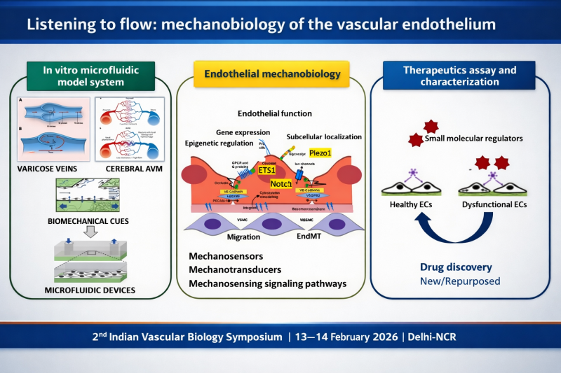 Launched in 2025, the Indian Vascular Biology Symposium serves as a national platform bringing together leading researchers across India to advance discovery and innovation in vascular biology. The VBS2026 meeting featured scientific sessions on vascular development, endothelial signaling, repair and regeneration, and the role of endothelial cells in diverse pathologies.