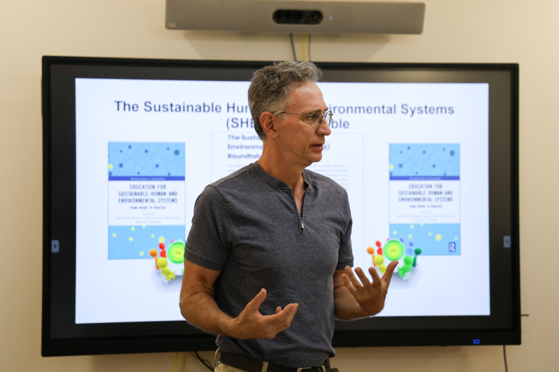 In the workshop, Prof. Barresi introduced the SHES framework, emphasizing its foundations in holism, systems thinking, supradisciplinarity, revealed complexity, social learning, and stakeholder engagement. He demonstrated how these principles can help institutions integrate sustainability into academic curricula, research, and governance.