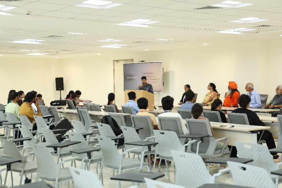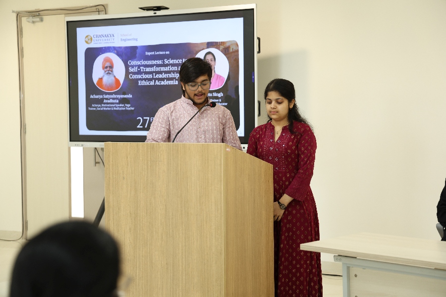 University’s School of Engineering hosted an inspiring expert lecture on 27 February 2026, featuring two distinguished voices, Acharya Satyashrayananda Avadhuta, Acharya, Motivational Speaker, Yoga Trainer, Social Worker and Meditation Teacher, and Reetu Singh, Yoga Trainer and Neo humanistic Educator. The session explored the profound intersection of consciousness studies and scientific inquiry, inviting engineering students to look beyond technical competence toward inner transformation and ethical leadership. Acharya Satyashrayananda offered deep insights into the nature of conscious awareness, drawing from yogic and meditative traditions, while Reetu Singh grounded the conversation in practical tools of neohumanistic education and mindful living. Together, they made a compelling case for academia that nurtures not just skilled professionals, but self-aware, values-driven human beings. The session resonated strongly with students navigating the pressures of a demanding academic environment, leaving them with both perspective and purpose.