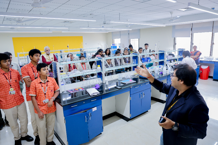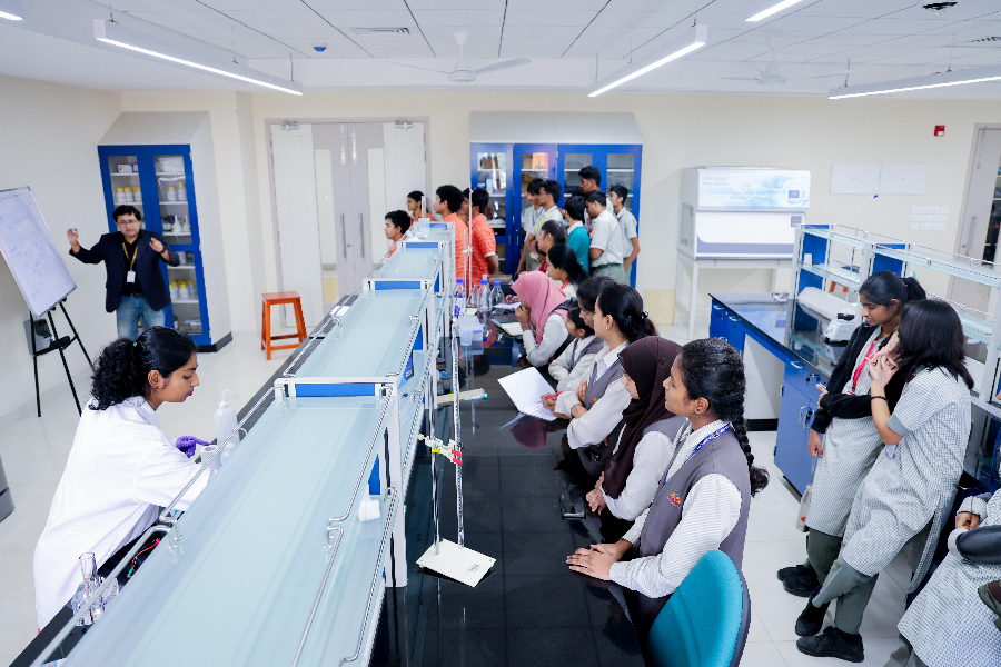 In the physics lab, Dr. Bhagyashri and Dr. Madhuri showcased the relevance of physics in energy, wave dynamics, and applications of electromagnetic waves through interactive demonstrations that sparked curiosity. Students also gained hands-on experience with a range of engaging physics experiments.