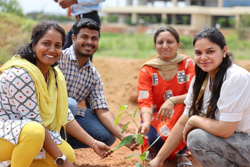 Chanakya University leads in sustainability, through eco-friendly practices Our commitment to green initiatives is reflected through our comprehensive measures aimed at maintaining a green and pollution-free campus. A cornerstone of our sustainability efforts is the extensive plantation drive, with annual large-scale tree-planting events involving students, faculty, and staff. This drive enhances our 116-acre campus’s beauty also significantly reduces our carbon footprint. Through this initiative, we aim to boost biodiversity and create habitats for local wildlife.